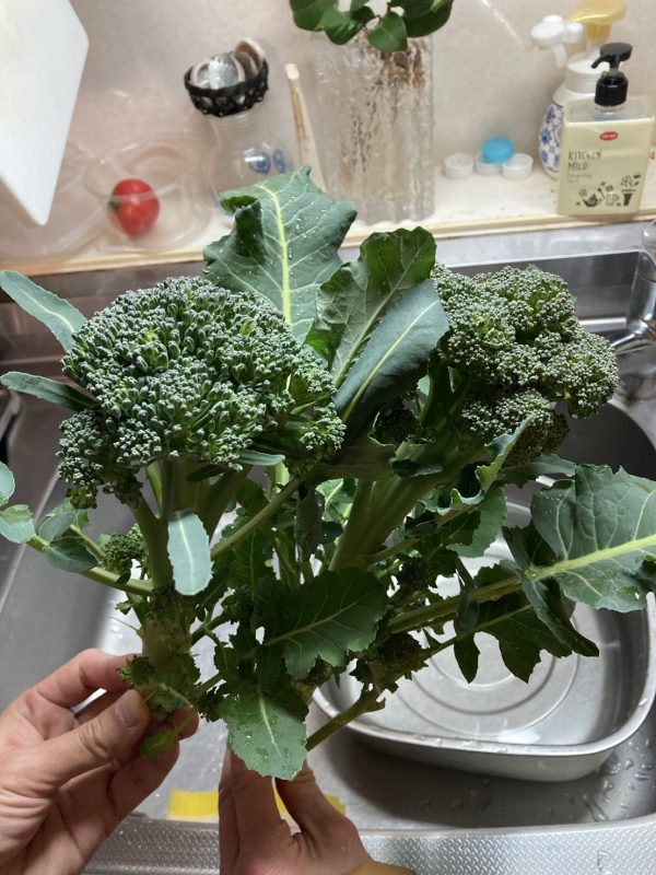 それからブロッコリーを与えだしたのですが、如何せん夏になると高いんです。そこでなんとなく庭の一角で節約のためブロッコリーを植え始めます。ただ、初めは葉が育つばかりで、いわゆるブロッコリーの部分は親指くらいのサイズでした。