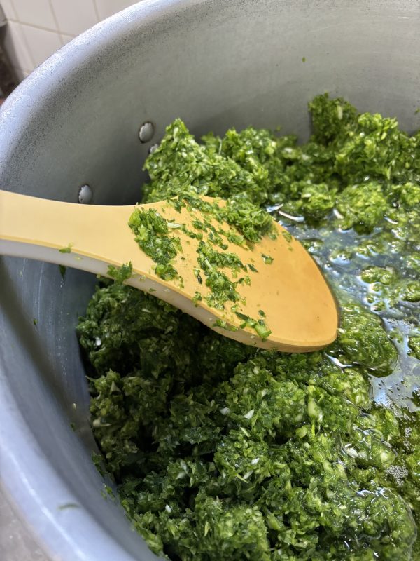 九条ネギにナッツとにんにく、生姜でアクセントを加え、津乃吉さんの真骨頂である「京出汁」を白味噌で味を整えたどんな野菜料理にも合うソースです。